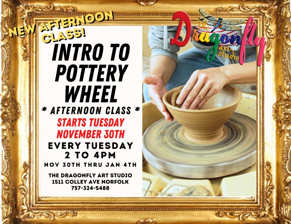 Beginner Pottery Wheel at The Dragonfly – Tuesdays 2 to 4pm – November 30th through January 4th